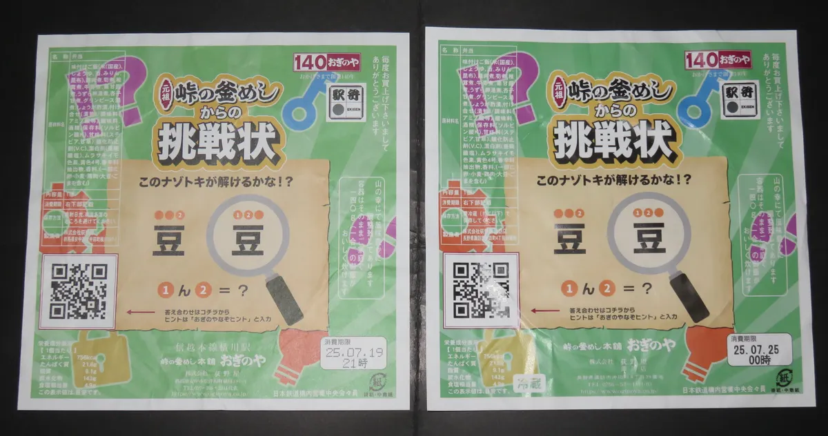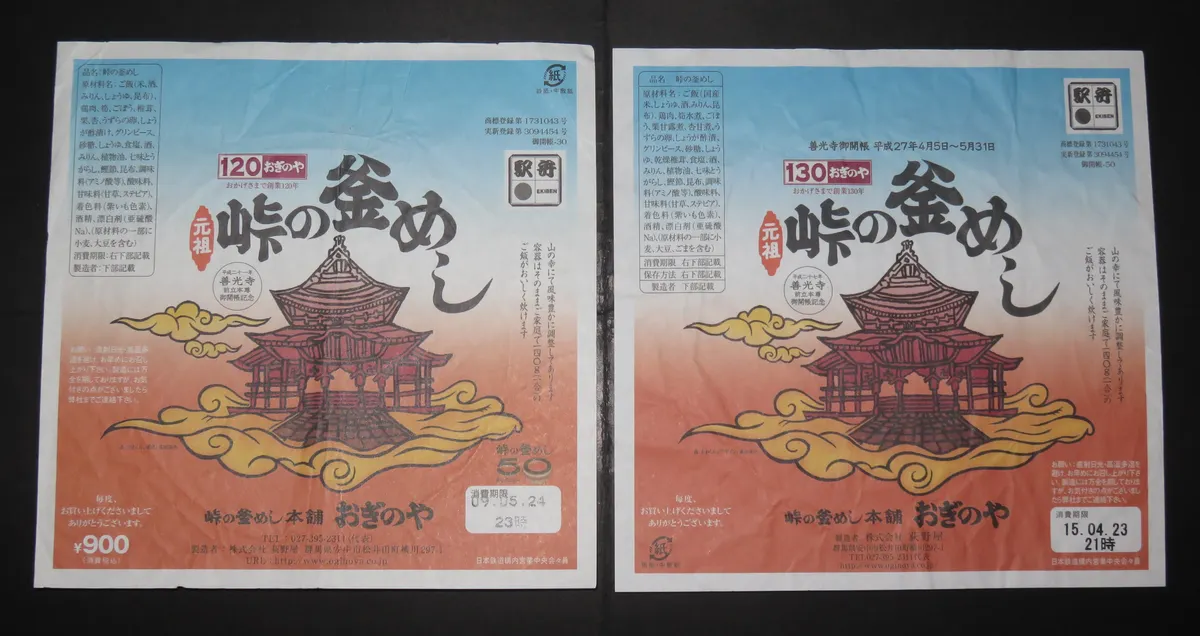 2枚目は価格表示、ご開帳期間の記載、釜めし周年、賞味期限書体(個人的には23時って初めて見たかも)、ご開帳30/50、URLと書くか書かないかあたりが要素の違いで、配置の差が大きいみたいですね🤔