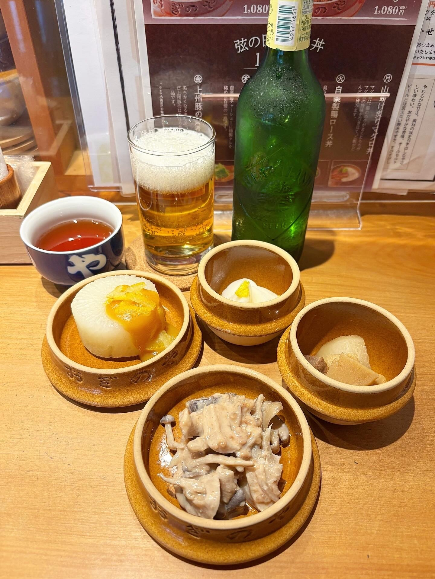 トップ > おぎのやの写真 > 弦納め① 村長の嫁 2025/12/20 15:27 弦納め① 少々早いですが、今日は弦納めしてきました!ひとり忘年会です🍺笑 ちょい呑みセットはかぶの浅漬けと、マグロ.たけのこ.大根の煮物?でした😊その他にいろいろ茸の胡桃和えと、柚子味噌ふろふき大根をチョイス。胡桃和え、これは私めっちゃ好きです🍄🟫💕ふろふき大根は柚子で爽やかでした!からの、ちょっと物足りないなぁってことで②へ続きます💁🏻♀️笑 いいね 共有する 共有する X facebook LINE リンクをコピー コメントする 4 件の返信 (新着順) ミュートしたユーザーの投稿です。 投稿を表示 kotone 2025/12/21 22:54 ひとり忘年会でのんびり弦さんを味わうのいいですね✨ 柚子味噌のふろふき大根食べたいです😆 いいね 返信する ミュートしたユーザーの投稿です。 投稿を表示 せんじ 2025/12/21 08:55 柚子味噌ふろふき大根は冬メニュー? 胡桃和え🍄は美味しいですよね👍 他の店には無いから頼んじゃいますよね😋 いいね 返信する ミュートしたユーザーの投稿です。 投稿を表示 あさま4号 2025/12/21 07:19 冬らしいおつまみですね😋 これは確かに、ビールには軽いというか、日本酒向きかもしれません🍶 いいね 返信する ミュートしたユーザーの投稿です。 投稿を表示 ハチmama 2025/12/20 21:51 ひとり忘年会いいですね☺️集中して味わえますね✨ 柚子味噌ふろふき大根とてもおいしそうです💕 いいね 返信する