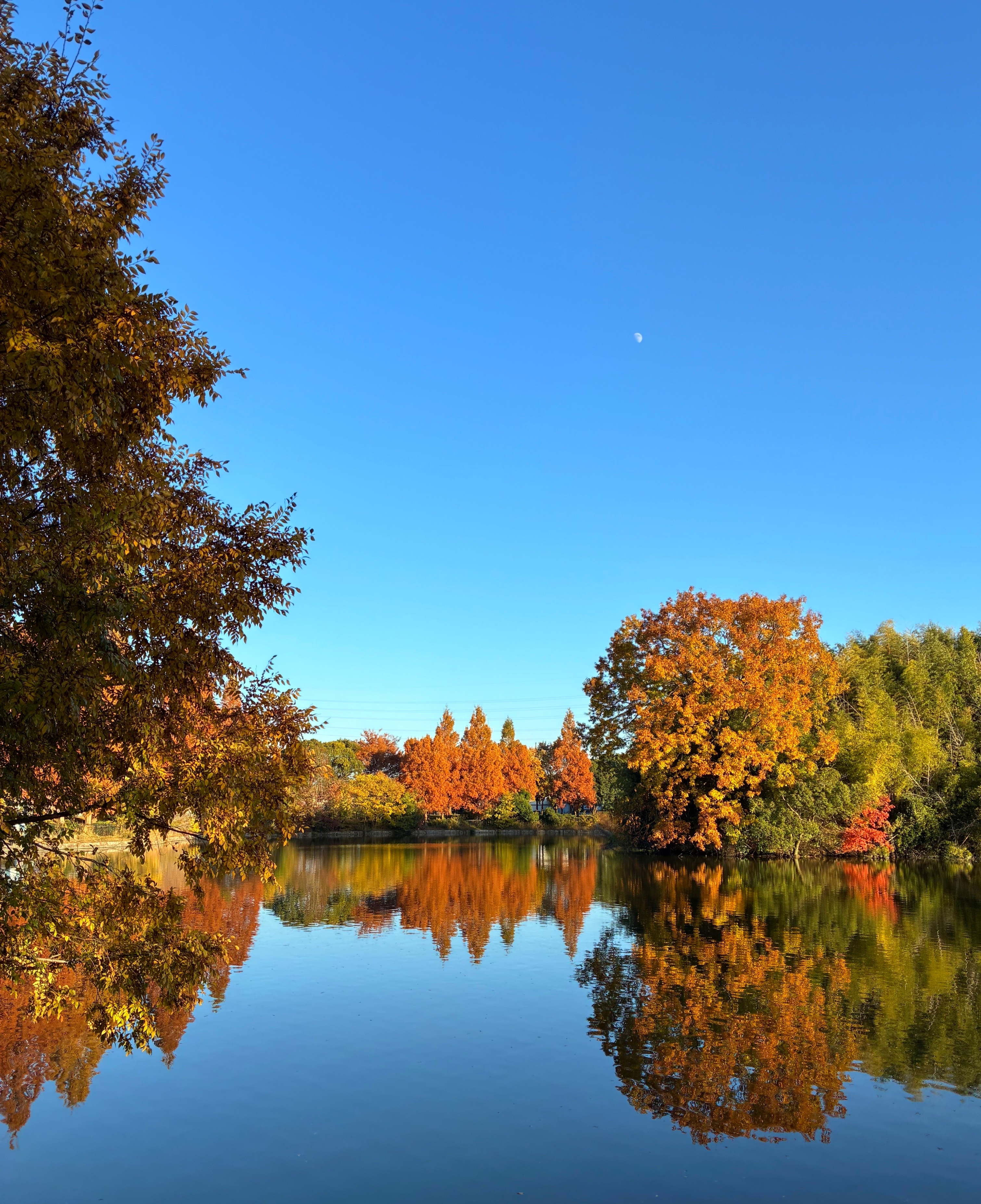 投稿を表示鮮やかな木々と、紅葉が映る水鏡、更に月まで・・・
