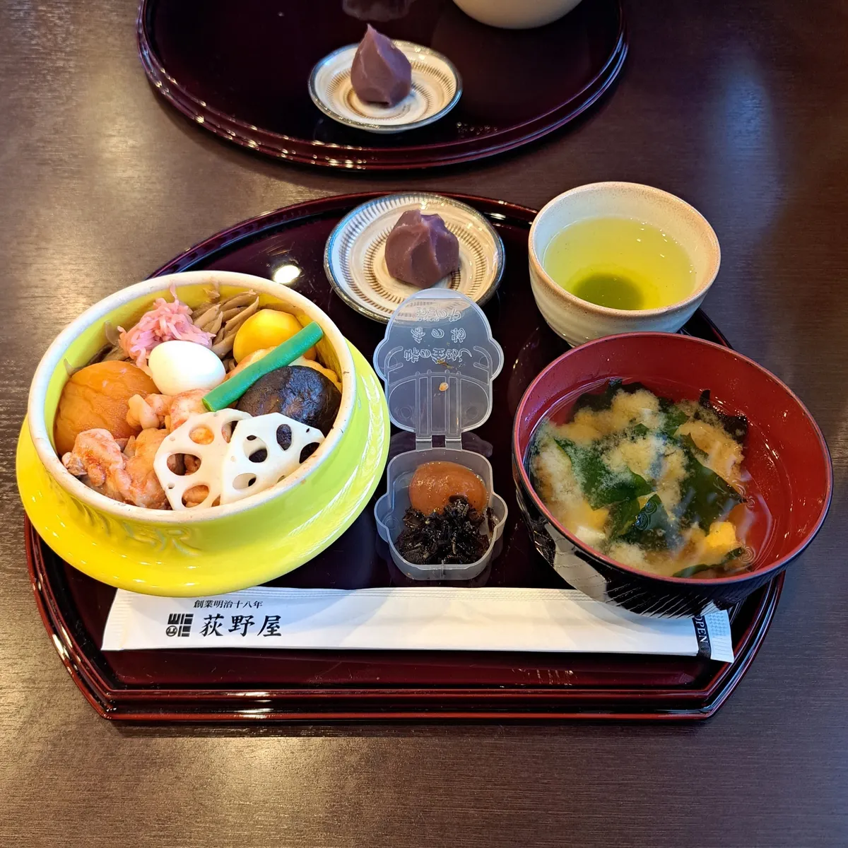 初めてなので基本中の基本の峠の釜めし定食にしようかと思ったのですが今を逃したらもう食べられないであろう140周年記念釜めし定食にしました✨