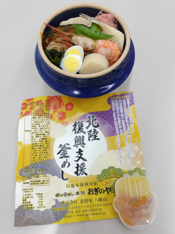 先日の荒天の中、別件で外出した際に北陸復興支援釜めしを手に入れる事ができました😆(最後の1個でした😅)