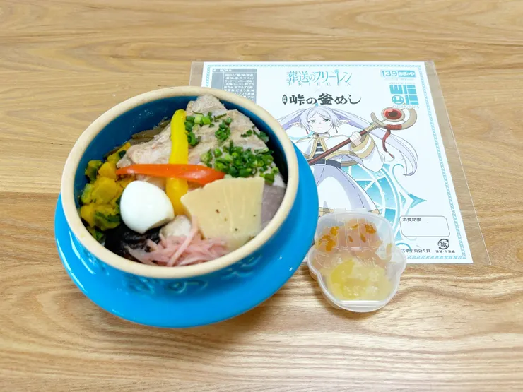 今日フリーレンコラボ釜めしが届きました〜😆早速お昼にフリーレンをいただきました🩵買う時細かいことは見ずにポチったので、鶏肉だと思っていたお肉は合鴨ローストでした🦆しっとり柔らかくて美味しく、しかも1切れが結構分厚いのでかなり食べ応えありました!肉盛り、というだけありますね👏🏼付け合わせは栗きんとんと杏コンポートだったので食後のデザートに🌰今回も綺麗な掛け紙が別で入ってましたが、いつもの掛け紙より厚め?なしっかりとした紙でした😮✨今日の夫の夜ごはんにフェルン、明日の私のお昼(我慢できなかったら朝ごはん笑)にシュタルクをいただきたいと思います🤭💕