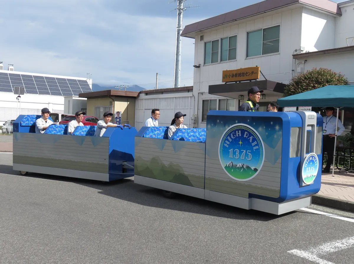JRの社員さん達が、セレモニー前に観光列車のミニハイレール1315に試乗して安全確認✅