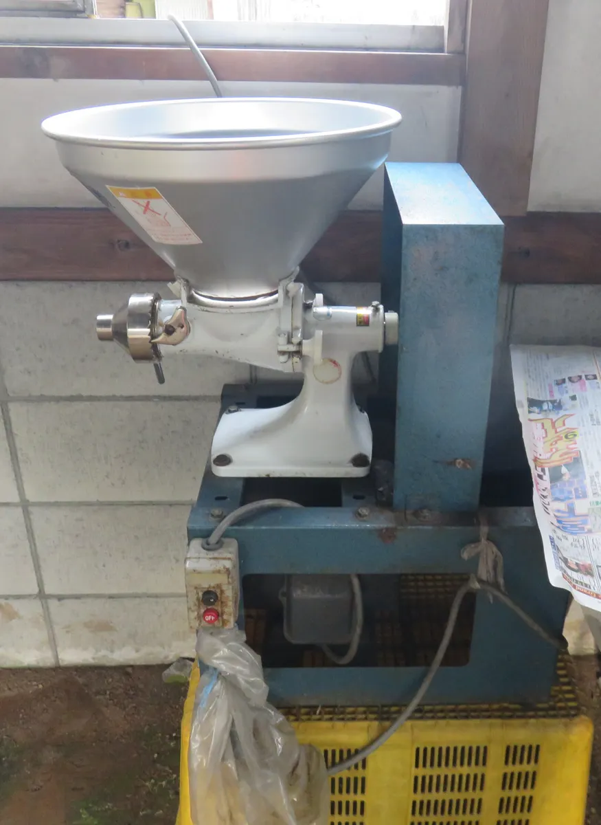 蒸しあがった餅米🌾を「お餅練り機」に入れて米粒を潰して練ります。