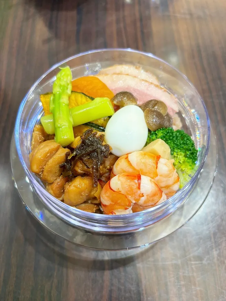 たまたま横川へ行くタイミングで販売が発表されたクリア容器の釜めし🤍中身はノーマルとこの特別釜めしです!せっかくなので夫も私も特別釜めしにしました✨こちらの釜めし、メイン系が鶏肉、鴨肉、海老となかなかに豪華で食べ応えがあり、さらにご飯は栗入りお赤飯🌰(秋月の栗ご飯より栗感あったかも!)特に鴨肉の塩味とこのお赤飯の甘味の相性が個人的に良かったです👏🏼お野菜も美味しかったしかなり大満足な釜めしでした😍こちらは都内販売はなさそうなので、食べられて良かったです🥹💕(中身がノーマル釜めしの方は都内で買えるんですよね?ややこしくて🤣💦)