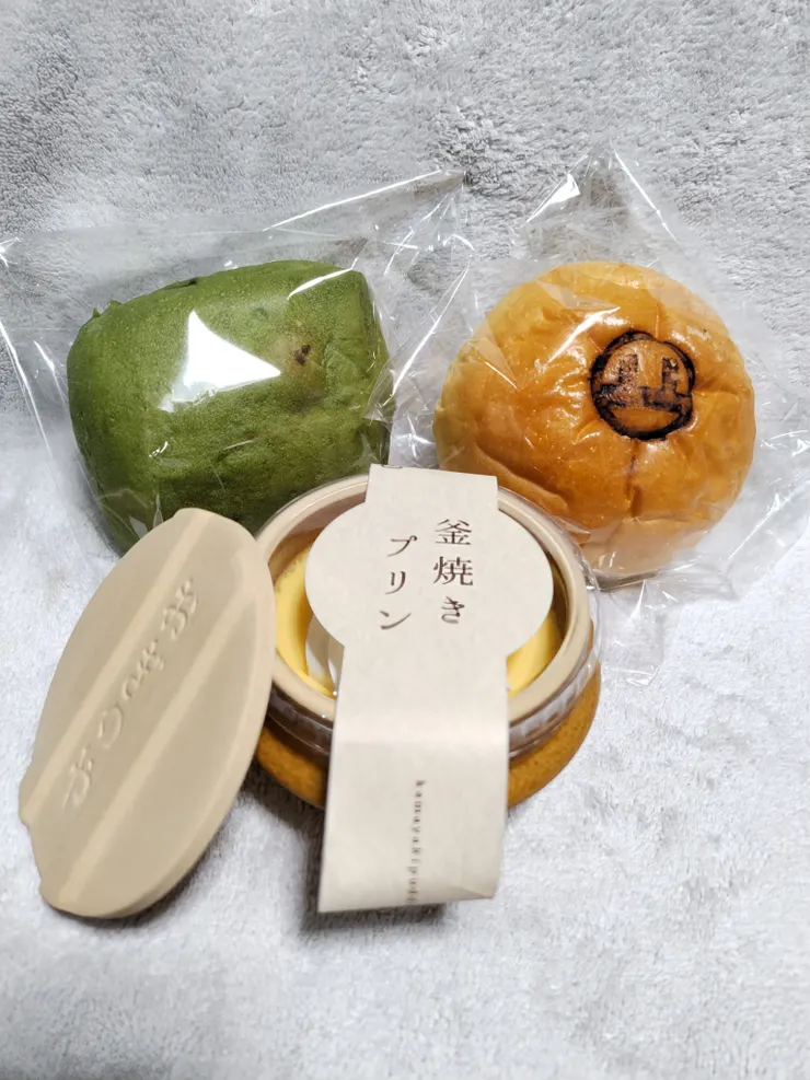 美味しそうなパンと釜焼きプリンも仕入れて、気分はお腹いっぱい😊