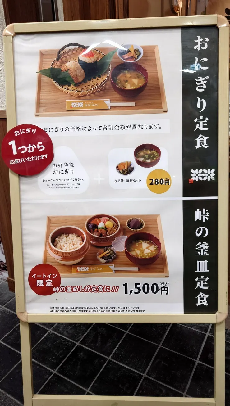 好きな🍙2つにお味噌汁とお漬物がついた、おにぎり定食を頼みました😊