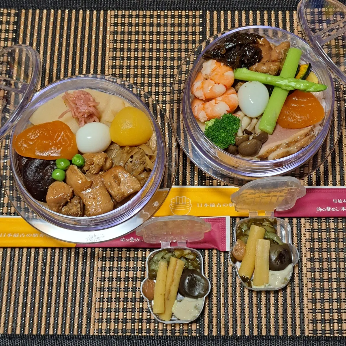 クリア釜の【峠の釜めし】と【荻野屋140周年記念釜めし】は各15個の販売♡
