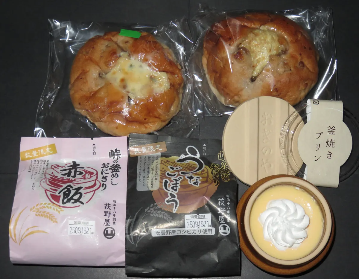 以前から気になっていた釜めしパン「山ごぼう」と「わさび漬け」・ミニ釜プリンと蓋を購入。