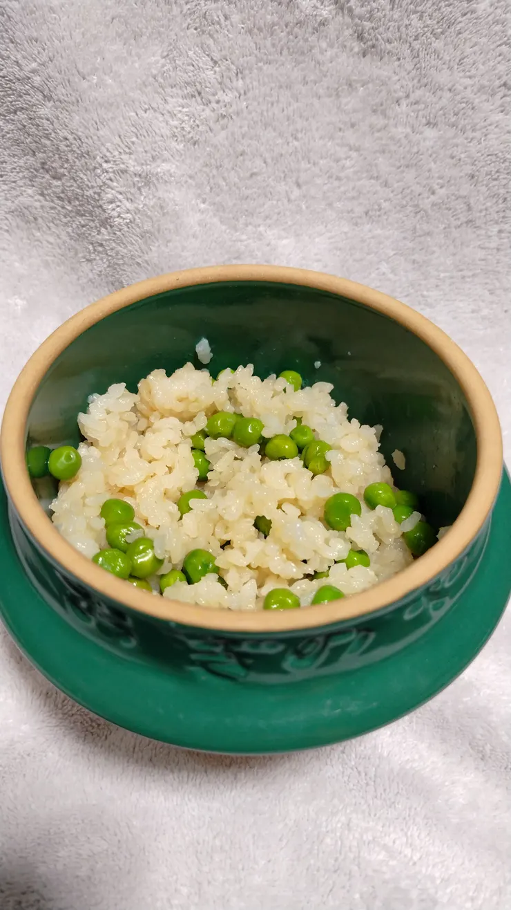 緑釜を手に入れ、グリンピースの美味しさに気付き🟢緑色の一品釜めし🟢大正解でした🥰