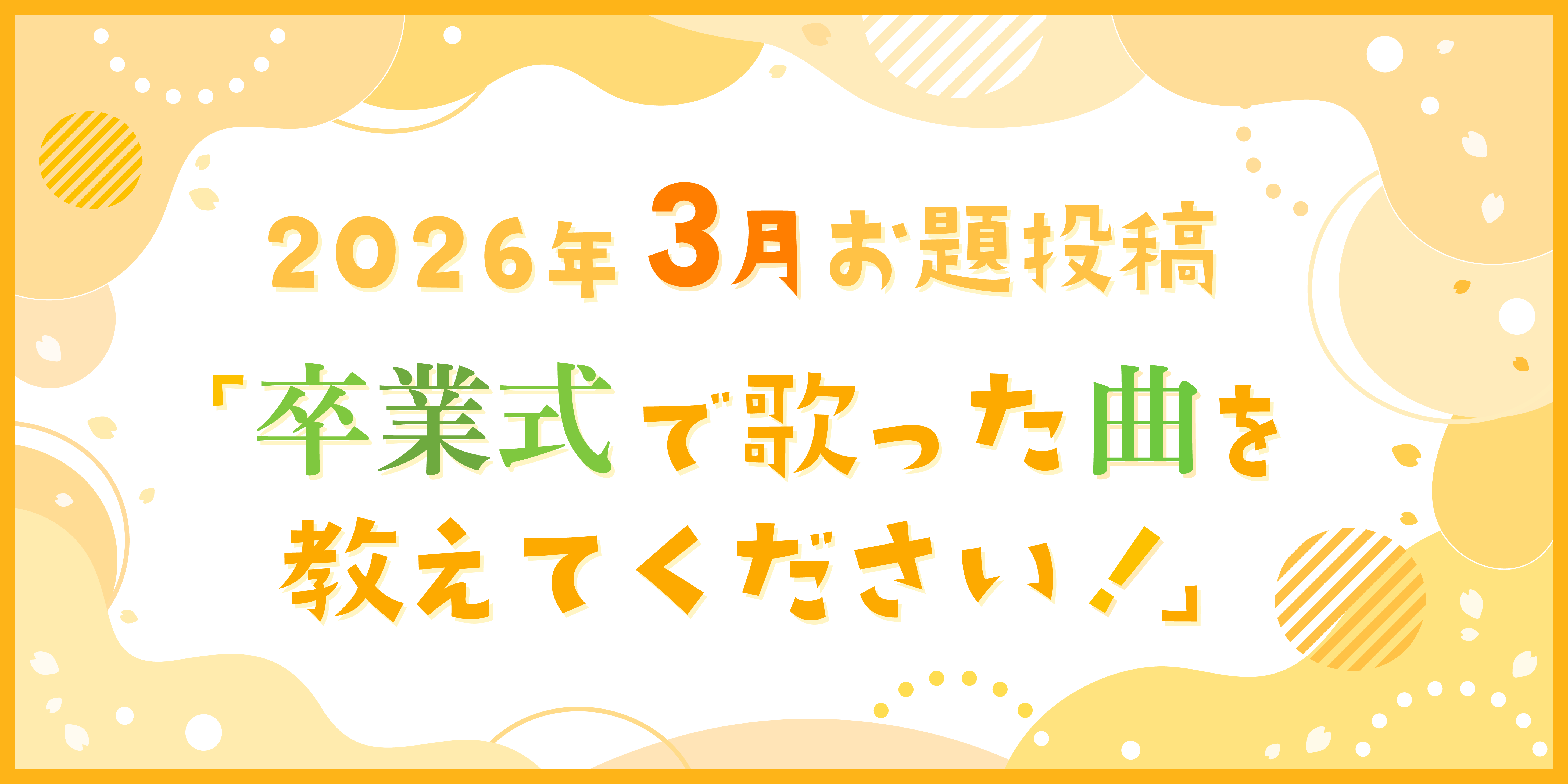今月は、皆さんがこれまでの卒業式で歌った曲や、心に残っている合唱曲をぜひ教えてください!