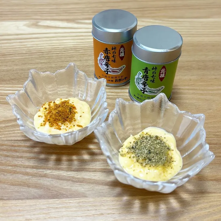 おぎのわ管理人2号さん、ハチmamaさんの投稿を参考に、唐揚げを作りマヨ七味でいただきました!味の比較のために赤と青を一緒に。まずはマヨ七味だけ少し味見…赤は色々な香りがしつつもマヨと合わせても辛味は結構感じられます。青は生姜や柚子が入っているからか少しさっぱりめなお上品な辛さといった感じでマヨと合わせると辛味はだいぶまろやかになりました。どちらも昆布や椎茸が使用されているのでかなり旨味のある七味かと😊👏🏼