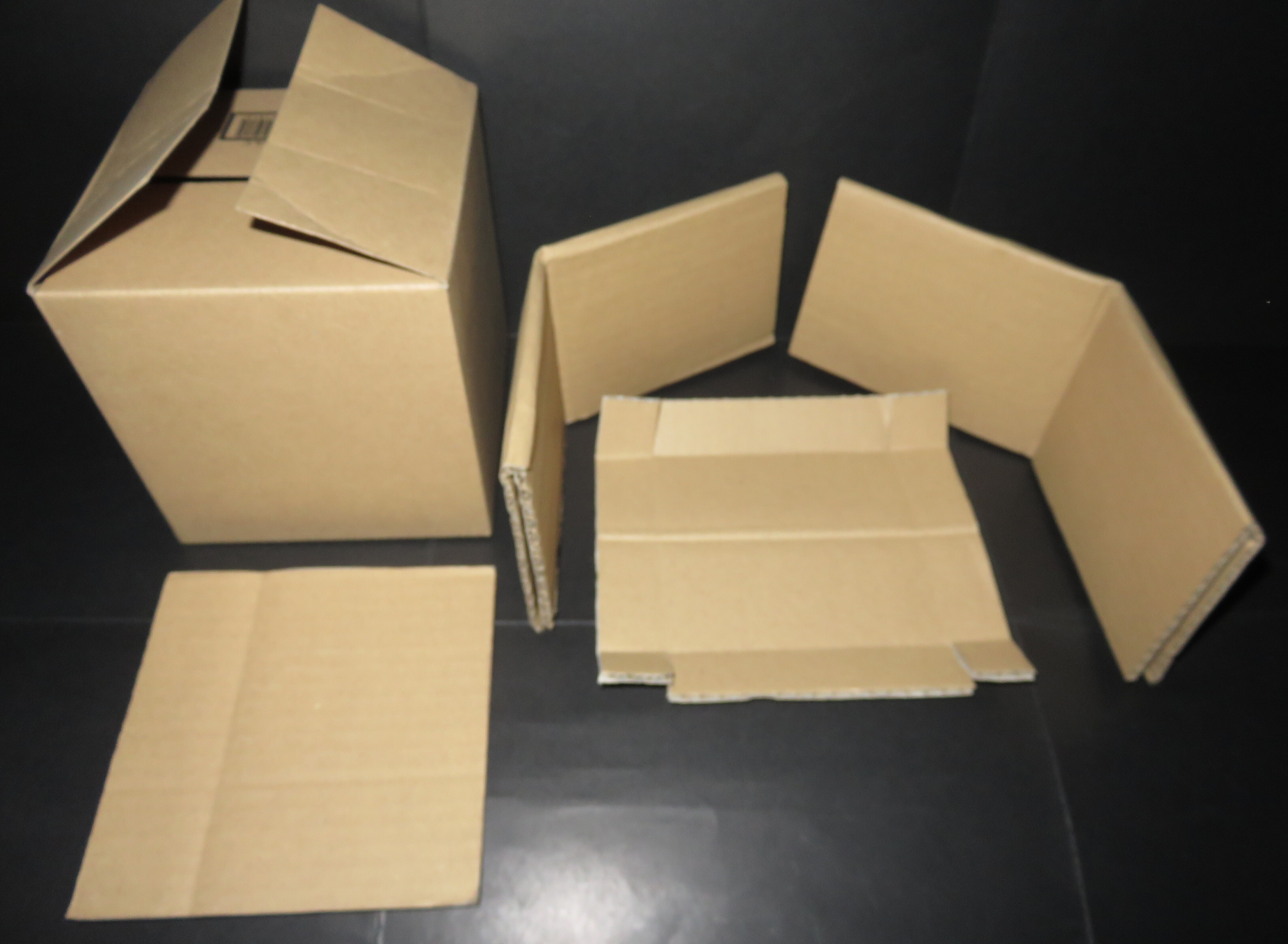 170mm×170mmの段ボールに切り込みを入れた物(上)のを組み立て(下)。