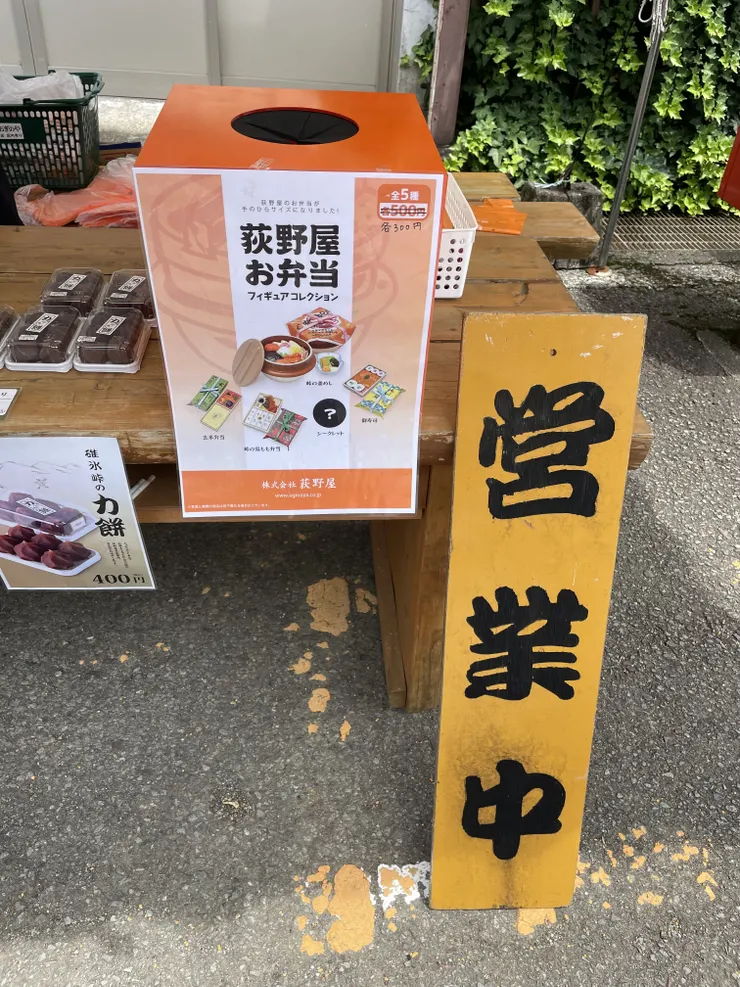 駅の外のおぎのやさんのテントでは、釜めしやガチャポンなどが販売されていて、思わず息子とチャレンジしてしまいました。いつのまにか料金が一回400円→500円→300円になっていたんですね🉐