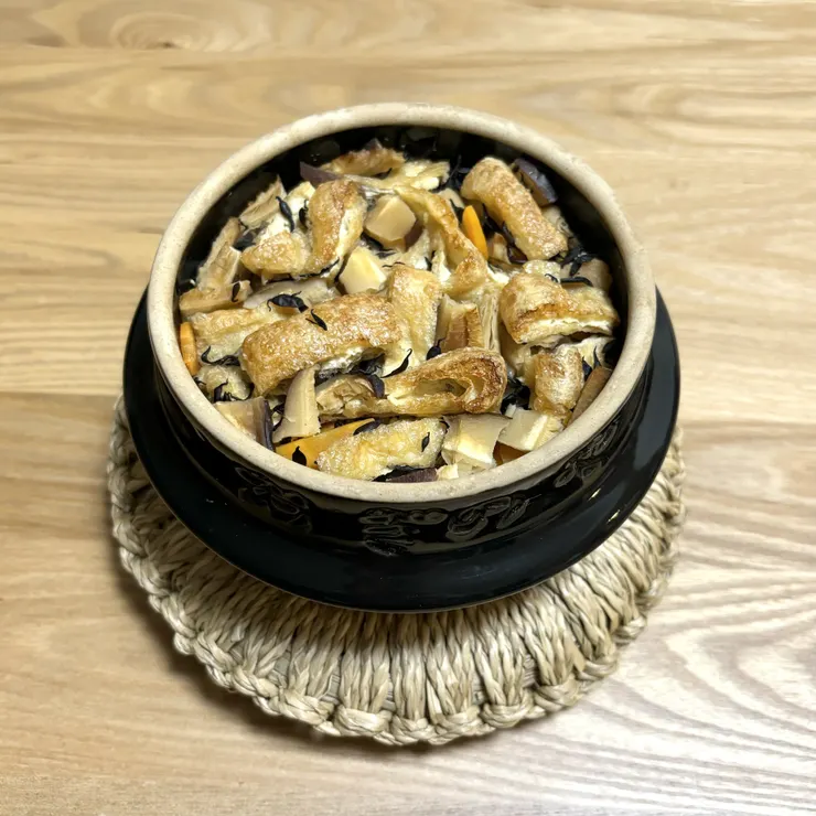 今回具材は乾燥ひじき、乾燥椎茸(小さくちぎる)、にんじん、油揚げ、を入れました