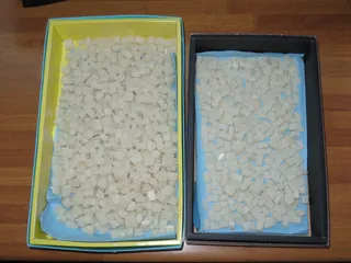 年末に作ったお餅を かき餅🍘に。我が家で1~2月の恒例行事です。 のし餅を1cm四方の大きさに切って天日干し。箱に入れて晴れた日は室内で天日干し。雨や湿度の高い日は蓋をしてカビ予防。 これを約2ヶ月間、繰り返すと水分が完全に飛んでカラカラの固い干し餅に。こうなると、もうカビる心配