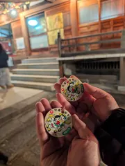 初詣参拝記念品 お詣りし、干支が描かれた交通安全守りをいただくのが毎年恒例の初詣になっています。