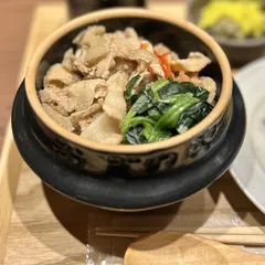 ついに達成❗️ おぎのや食堂のランチメニュー4種を制覇しました。最後となったのは、豚蓮根きんぴら釜めし御膳。茶飯と一体化する具材という点では、頭ひとつ抜けていますね❣️ おそらくごぼうの一品釜めしがこういう味わいなんだろうなあと想像しました。蓮根の他はパプリカとごぼう少々に、ほうれん草、薄切りの豚肉はし