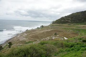 白米千枚田 震災前に訪れた早春の白米千枚田の景色は素晴らしかったです✨訪れた時期が早かったので水が張られた状態でした。ここ千枚田も能登半島地震と豪雨災害で大きな被害をうけました。今も復旧が進められているそうです。以前の風景が一日も早く甦ることを祈っています。高台から見た白米千枚田は絵にかいた風景のようで波の音だ