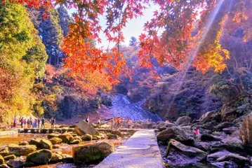 養老渓谷の紅葉 関東で最も遅い紅葉が見られる、房総半島の奥座敷の養老渓谷に行きました🍁周辺の華やかな色合いの木々の中を粟又の滝は滑るように流れ落ちていきます。