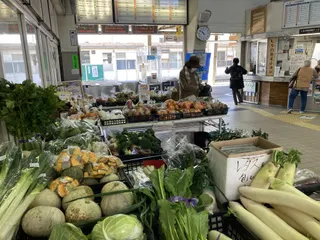 季節を感じる直売所 駅の改札口に設けられた無人直売所は新鮮な野菜や果物等が売られています。この時期は野沢菜、大根、リンゴ、柿などが秋のものが沢山並べられています。農家さん直売なので安いし新鮮です。信州に来た時には必ず寄る所です。