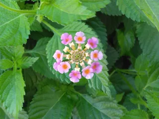 寄り合い 2mm程の小さな花が集まって100円玉程の大きさの花束を描く。色合いも形も可憐でカワイイです。 本当は球体なんだけど、中央部の花が落ちて何かい感じに😅小さな花束がところかしこに頑張って咲いている姿は応援したくなります📣 花束が黄色・オレンジ・赤・等、色々な色があるけど、ピンクが一