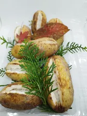 アケビ(薄褐色) 「ミツバアケビ」の実には2種類あり、皮が固く薄褐色がかったアケビと 鮮やかな紫色になるアケビです。熟したあけびの果肉は、ゼリー状で透け感のある乳白色をしています。 酸味がなく、バナナや熟した柿に似た味わいですがわたはは種がギッシリ詰まっていて殆ど食べるのが困難です。😢