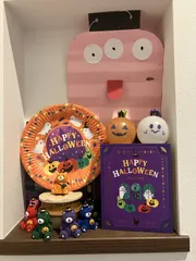 しろたそさんちのハロウィン飾り2024 10月31日、本日ハロウィンですね🎃しろたそさんちの玄関もハロウィン飾りで一色です^_^ ミニ釜と保育園のハロウィンイベントで子どもが作ってきたお化けを添えて👻(和風…笑