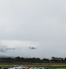 清泉寮から眺める山々 清泉寮から眺める南東方向の眺めです。ジャージー牛乳を使ったソフトクリームなどを売っているジャージーハットからの眺めです。これは東側の金峰山とその周辺です。尾根が前後に重なっているのですが残念ながら靄(霧又は霞)がかかっていて富士山が見えませんでした😢💦鳥が金峰山の前を飛んでいたので思わずパシャリ☺️