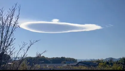 今月の17日は朝から円盤型の雲が1日中微動だにせず多少カタチは変わりましたが上空に浮かんでいました。調べたところ吊るし雲とかレンズ雲と呼ばれ上空に強風が吹いていて湿って入る時に見られる現象だと知りました🤔✨