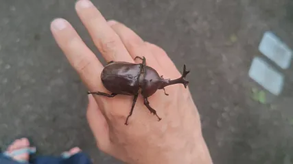 自宅アパートの玄関前や階段下で連日(4日で3匹)かぶと虫を見つけて、その度に手に乗せて撮影。(撮影はしてないけど一週間で5匹くらい目撃)