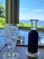 水出しコーヒーと海 暑くて表にいたくはない時に最高な、ホテルのラウンジ⛵✨たっぷりの水出しコーヒーと、程よく涼しい室内から眺める海が最高でした😆