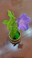 小茶釜朝顔…開花🪻 小茶釜朝顔…開花しましたーっ♪😆まさかとは思いましたが…咲きました❗😆とりあえず一輪ですが😅しかも、ツルは出ませんでしたねぇ。やはり環境に適応して背を伸ばさなかったのでしょうか…それで「私にはツルは必要ない☝️🪻」と?🤔釜も茎も小さいので花は1つぐらいしか支えられない感じもしますし…このまま一輪ずつ