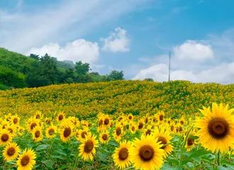 小さめのひまわりがあたり一面に。おっきなひまわりなら撮影しても見映えしそうなのになーと思いながらこれも肉眼や動画の方が感動するんですよねー。でも写真に残しておきたい気持ち。