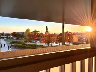 古都の秋🍂 京都国立博物館には何度も行っていたけど、知らなかった場所。2階に展望スペースがあり、スリットのようにお庭が見えました🥰