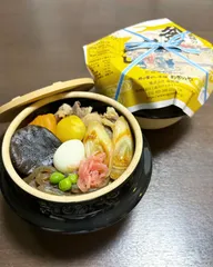 先日aiさんとご一緒した時に、神田店から日本橋へ散歩しながら14時の入荷を釜めしトークしながら待ち…🤣笑 やっと日本橋の釜めし食べることができました✨全体的に甘めの味付けな、すき焼き風の釜めしです🥰ごはんは舞茸ご飯でした!牛肉もたっぷりで美味しかったです🤤これはまた食べたいなぁ〜❤️