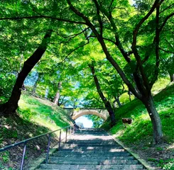 緑のトンネル 階段登るとヒーヒーいいます🤣暑さと体力の無さが原因でしょうか。スマホ向けて撮影してるふりをして、息を整えています🤣