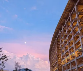 ピンクと水色 先週2日間万博に行ってきました😊夕日がピンク×水色で綺麗だったので、大屋根リングと一緒に📷暑かったけど夏のいい思い出になりました!