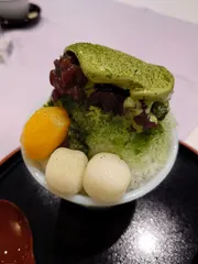 あんみつみたいなかき氷 夏を感じる出来事があまりなく、かき氷ばかりになってしまいますが…抹茶の氷と白玉やあんこなどがあって美味しかったです😊