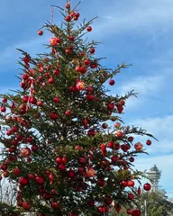 大阪の天王寺にあるてんしば公園のクリスマスマーケットに行ってきました🎅大阪のシンボルタワー〔通天閣〕がちらり✨ 青空の日のクリスマスツリー🎄✨見上げるだけで気分上がりました🥰