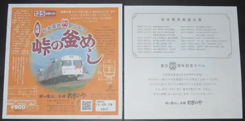第6回 掛け紙の紹介 峠の釜めしだけど、駅弁じゃない6枚です。全て駅弁マーク無し😅 1~5枚目は「松本電鉄 創立90周年」の記念掛け紙。峠の釜めしで唯一の両面印刷🌟5枚共、裏面は松本電鉄の歴史が書かれてます。 2007年に母体のグループ会社が経営破綻して「単独での鉄道施設の維持・更新の継続
