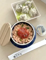 八幡山店で買ったお昼は、5月末以来の親子めし❣️ やっぱりいいですねコレ。シューマイは軽く温めて。椎茸とお肉の旨みたっぷりで、何もつけなくても美味しい😋