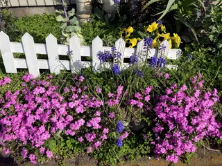 花壇に咲き誇る 自然に任せた花壇は気持ちがホッコリします色のバランスもとてもいいですね