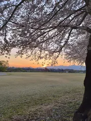 桜🌸と沈む夕陽 山裾に沈む夕陽を桜🌸と共に。🤗
