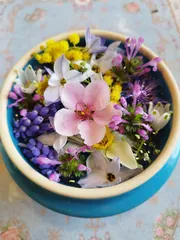 庭の春の訪れ 庭の小さな花たちも主役の春の訪れを釜に浮かべてみました🤗✨