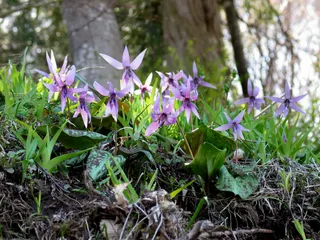 里山で早く咲くカタクリの花花を咲かせるのに7. 8年かかると言われていますいまはなかなか見ることができません薄紫の花びらが清楚で可愛らしく思えます