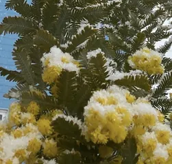 ミモザと雪❄️とても珍しい綺麗なショットですね😍💛✨ 自宅のお庭にあるといろんな姿のミモザが楽しめて素敵ですね💓