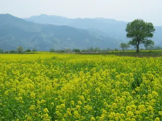 菜の花に包まれる 気持ちがいいくらい遠方まで広がる黄色い花の中に佇むと、そこは別世界に変っていく
