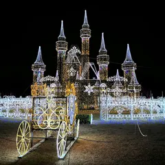 お城🏰 群馬県渋川市の赤城健康公園のイルミネーションです✨ 約100万個の電球で作られたお城は約12メートルの高さだそう🏰 馬車に乗ってお城へ✨