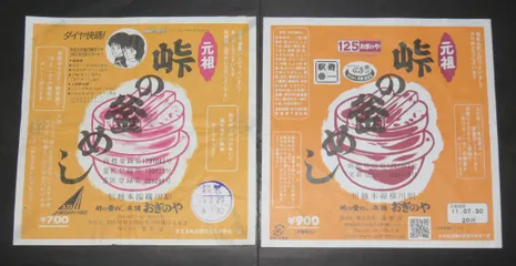 【1枚目】・左(1988年)峠の釜めしで漫画とコラボした掛け紙は初めてと思われます。¨あだち充先生¨は伊勢崎市出身だから「日当たり良好!」でコラボかな😄「みゆき」や「タッチ」じゃないんだ💦 ・右(2011年)¨2代目ぐんまちゃん¨が掛け紙に初登場。走る姿は直ぐに変わってしまいました。「初代